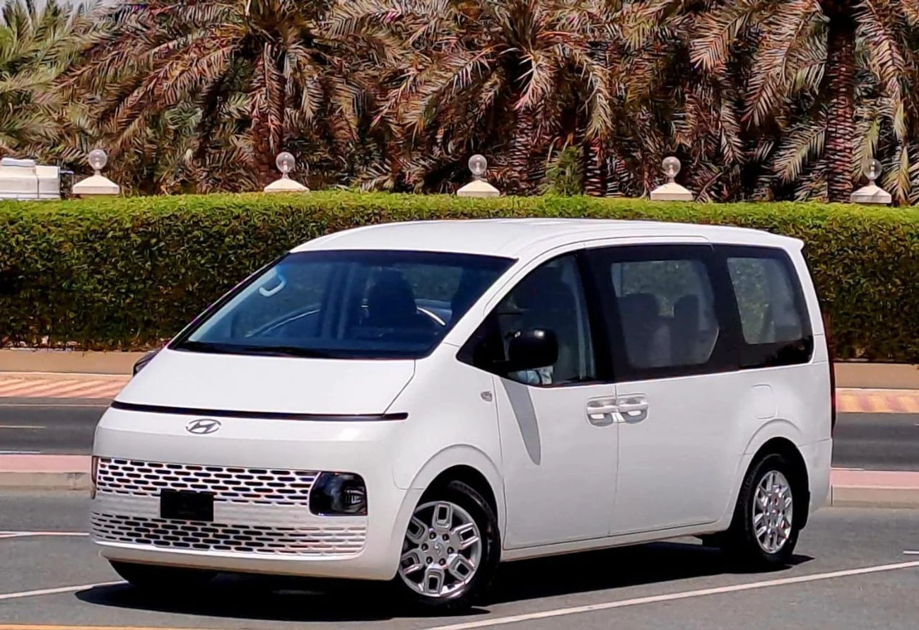 The Hyundai Staria 2022 redefines modern MPVs with its bold, spacecraft-inspired design and ultra-spacious cabin—ideal for Dubai families and larger groups. Its sleek exterior is highlighted by wraparound LED lighting, a wide curved windscreen, and an aerodynamic profile that make it both futuristic and functional. Inside, the Staria offers a wide-open interior with flexible seating for up to eight passengers, depending on configuration, with generous headroom and legroom across all rows. The panoramic sunroof floods the cabin with natural light, and sliding doors provide easy access for all passengers. Under the bonnet, the Staria delivers smooth and efficient performance, combining responsive engine power with refined handling for both urban drives and highway journeys. The ride quality is enhanced by quiet insulation and a cushioned suspension setup that absorbs road imperfections. High-end comfort and convenience are on full display inside the Staria, including dual-zone climate control, multiple USB charging ports, and a user-friendly touchscreen infotainment system with wireless smartphone integration. Ample storage compartments and thoughtfully arranged cabin space make it practical for daily errands or weekend escapes. Safety is well taken care of, with a comprehensive suite of modern technologies such as adaptive cruise control, lane-keeping assist, blind-spot detection, rear cross-traffic alert, and multiple airbags ensuring peace of mind for all occupants. Overall, the Hyundai Staria 2022 blends advanced design, generous interior space, and modern technology into one highly capable MPV—making it a top-tier choice for rental in Dubai's vibrant travel scene.