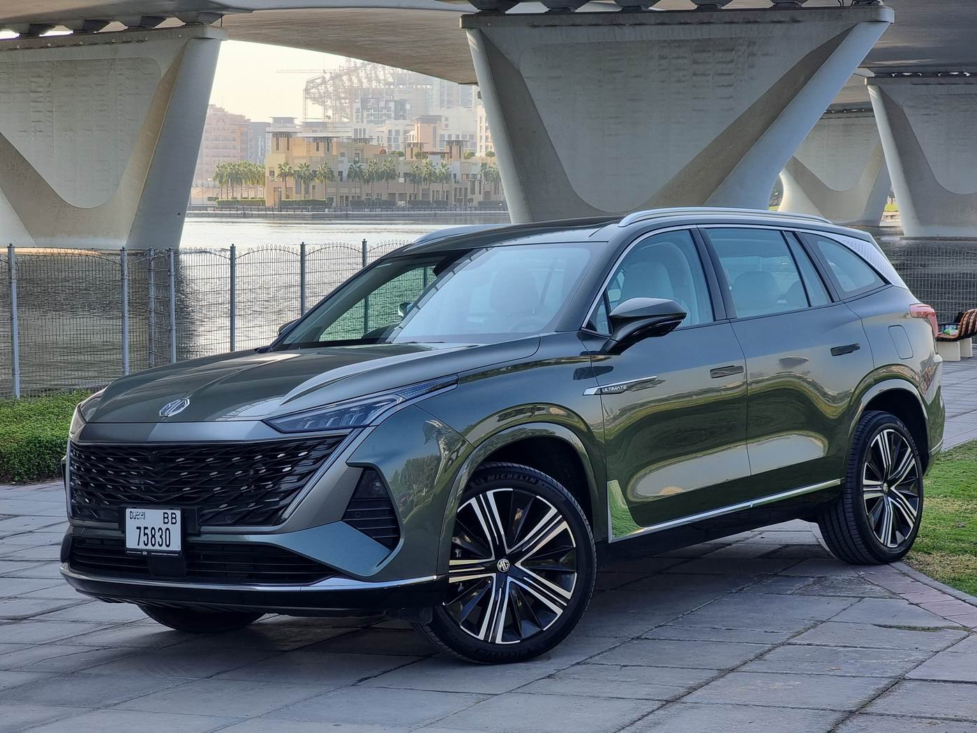 The MG RX9 2025 is a striking full-size SUV that combines elegant coupe-inspired styling with spacious three-row seating, making it a perfect choice for families and group travelers in Dubai. Its bold exterior features include LED lighting, a wide grille, and flowing roofline that exudes sophistication. Inside, the cabin is well-appointed with leather-trimmed seats, power-adjustable front chairs, and a versatile second row that reclines for added comfort. Dual digital screens provide a seamless interface, and a panoramic sunroof enhances the sense of openness. Under the hood, the RX9 is powered by a 2.0-liter turbocharged engine delivering robust performance and paired with a smooth nine-speed automatic transmission. Available all-wheel drive and selectable driving modes—including Sport, Eco, and Off-Road—ensure confidence in various driving conditions. Despite its generous size and performance, the RX9 maintains respectable fuel efficiency for its class. Safety and convenience are well catered for with a full suite of driver-assist systems, such as adaptive cruise control, blind-spot monitoring, lane-keep assist, and a 360-degree camera. The SUV also includes practical features like tri-zone climate control, multiple USB ports, and a premium audio system to keep all passengers comfortable and entertained. Overall, the MG RX9 2025 offers a luxurious, tech-forward, and family-friendly driving experience, making it an excellent rental option for those seeking style, comfort, and capability in Dubai.